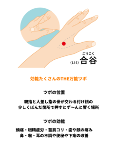 そんな方にぜひ知っていただきたいのが、今回ご紹介する合谷(ごうこく)というツボです。