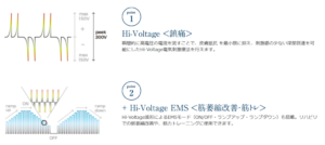 ハイボルトとは、高電圧の電気刺激を瞬間的に深部へ届ける治療法です。